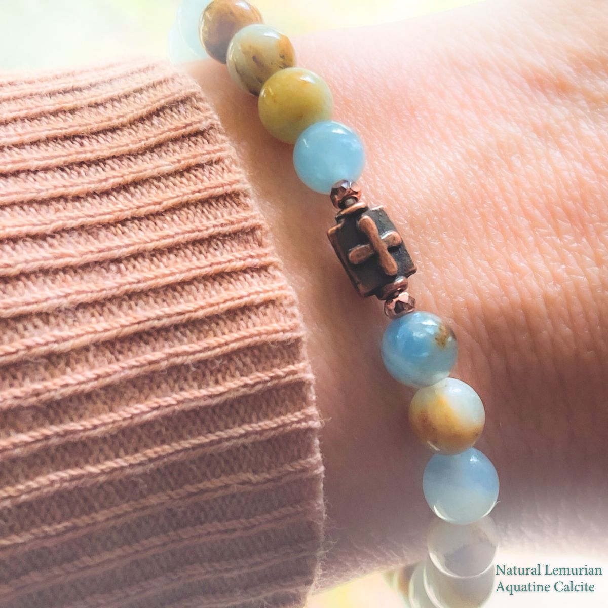 The natural druzy agate beads serve as a symbolic nod to the stone that was rolled away—revealing not only an empty tomb, but a radiant light that could never be contained.