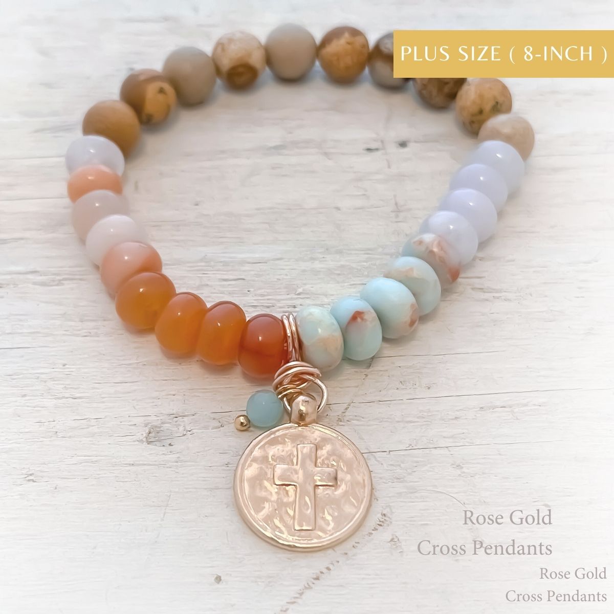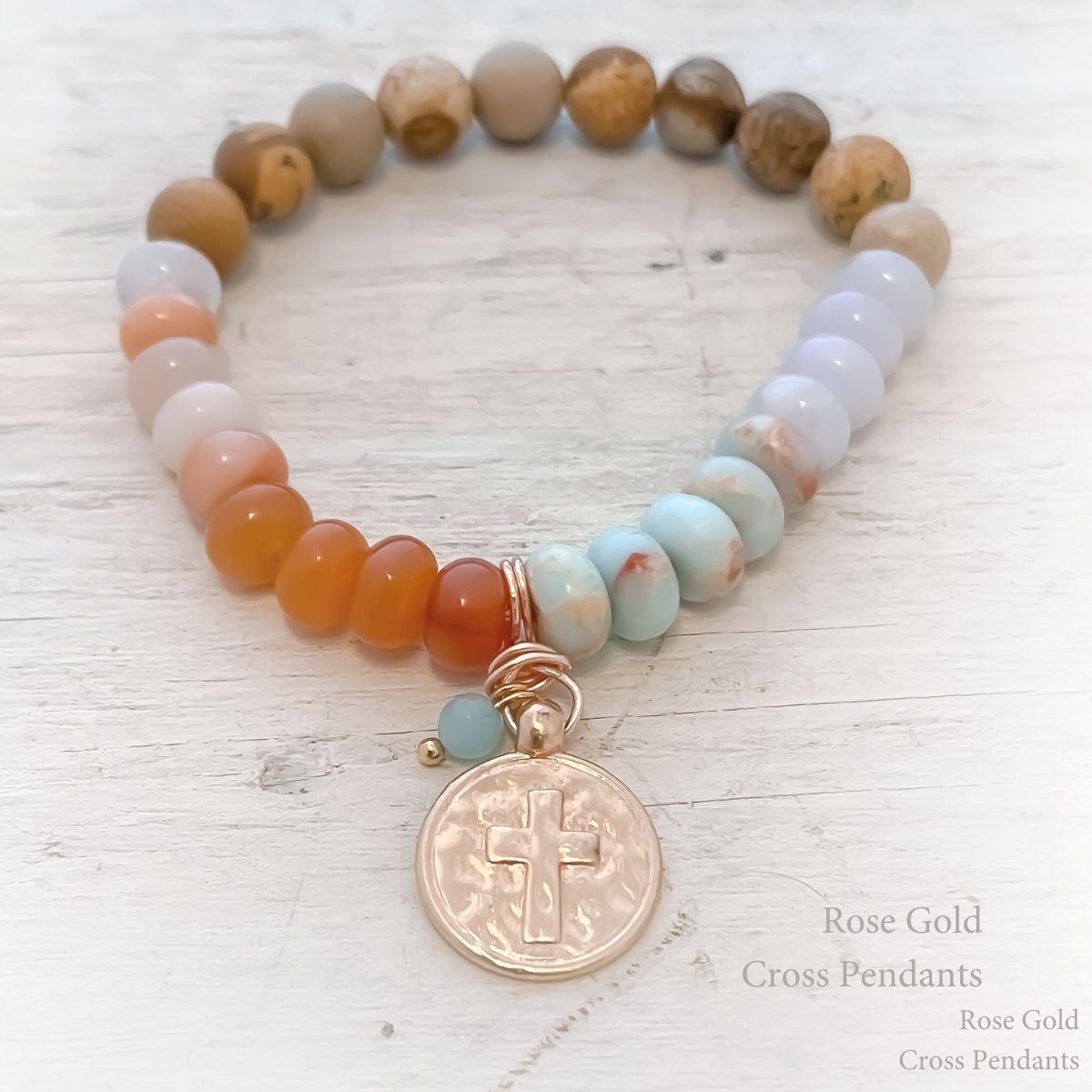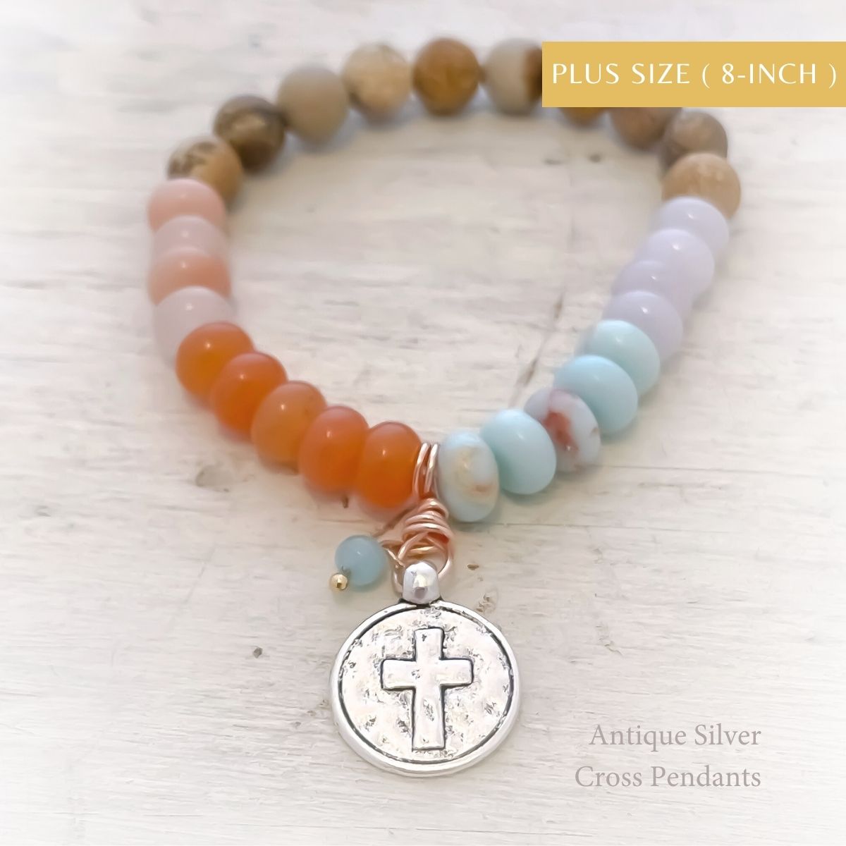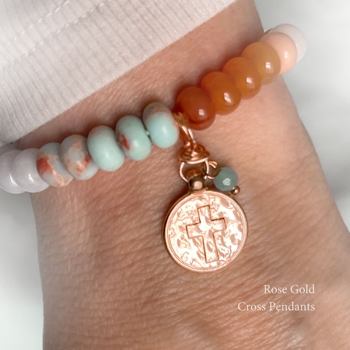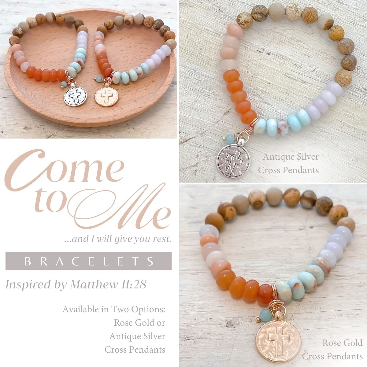 - Nearest the cross are three natural olive wood beads from the Holy Land—grounding this bracelet in the place where Jesus prayed in Gethsemane.
