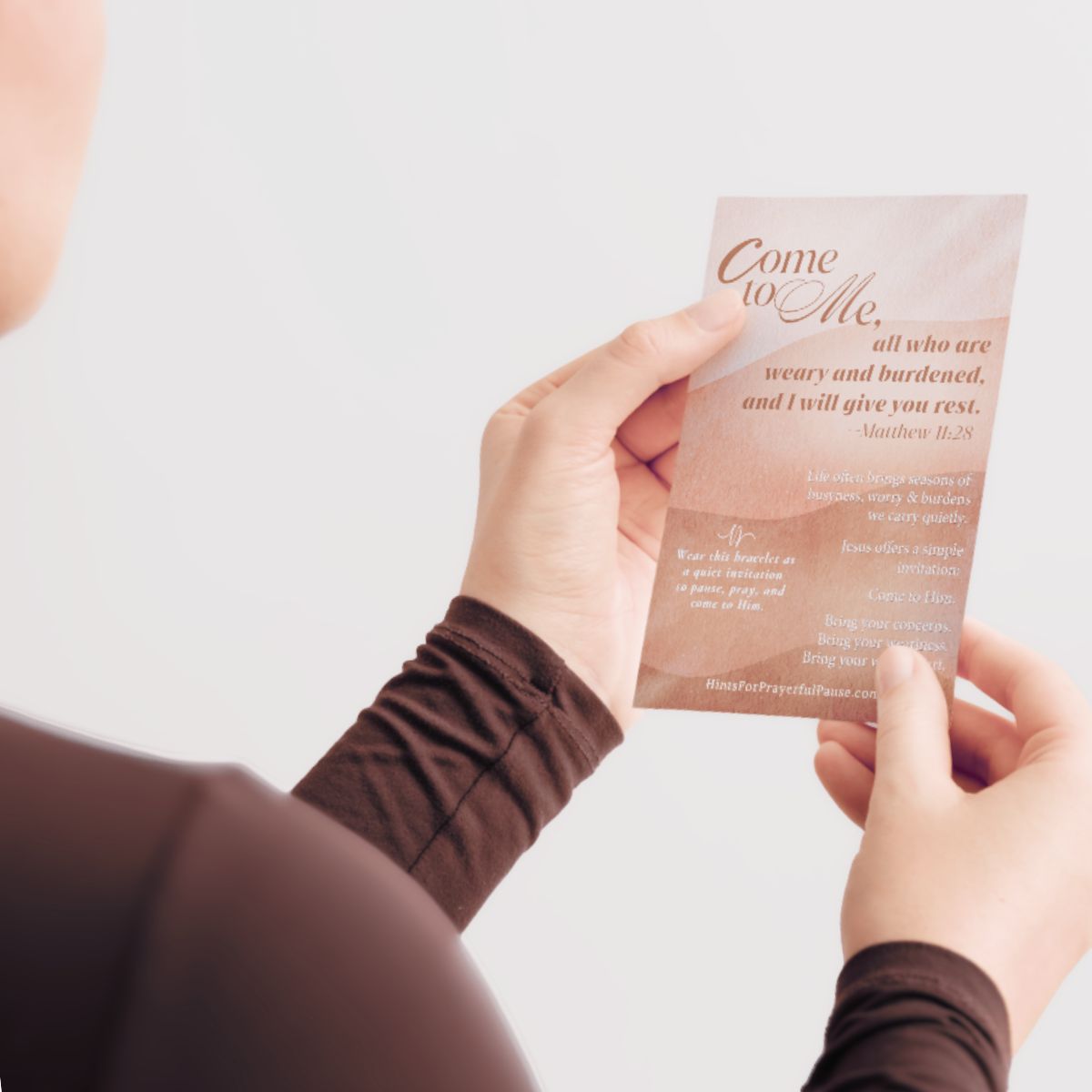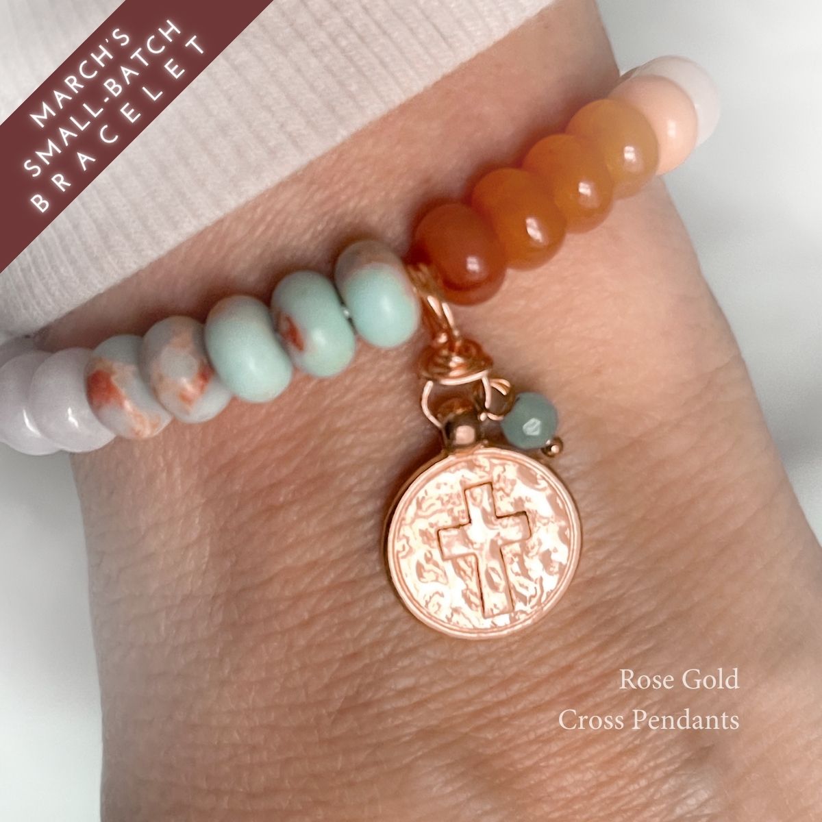 Worn daily, this bracelet is a reminder that staying with Jesus—day by day—gently draws us closer to His light.
