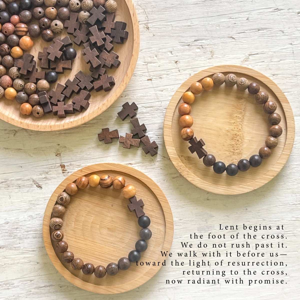 This simple bracelet made of wooden beads will be a great daily reminder that I am in an intentional season: a time for introspection—to reflect on Jesus' ultimate sacrifice on a wooden cross; for times of quiet questioning—to reflect and reject those things that have taken us away from Christ and refocus our lives with Christ as the Center.