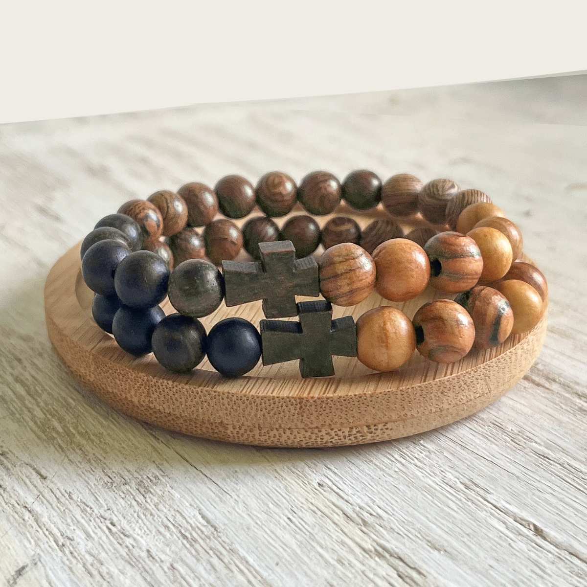 • The darker wood beads reflect humility, surrender, and the honest places we bring before God.