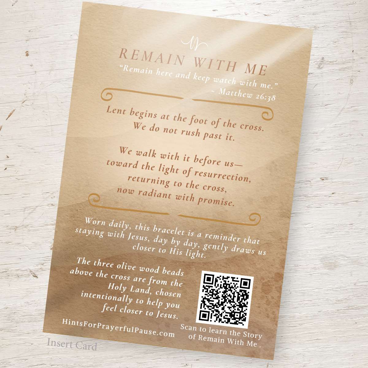 For the sacred season of Lent, I’ll be setting aside my daily ‘Thou Art With Me’ bracelet and wearing the Remain With Me bracelet instead—embracing this simple, meaningful reminder of Christ’s ultimate sacrifice on the wooden cross.